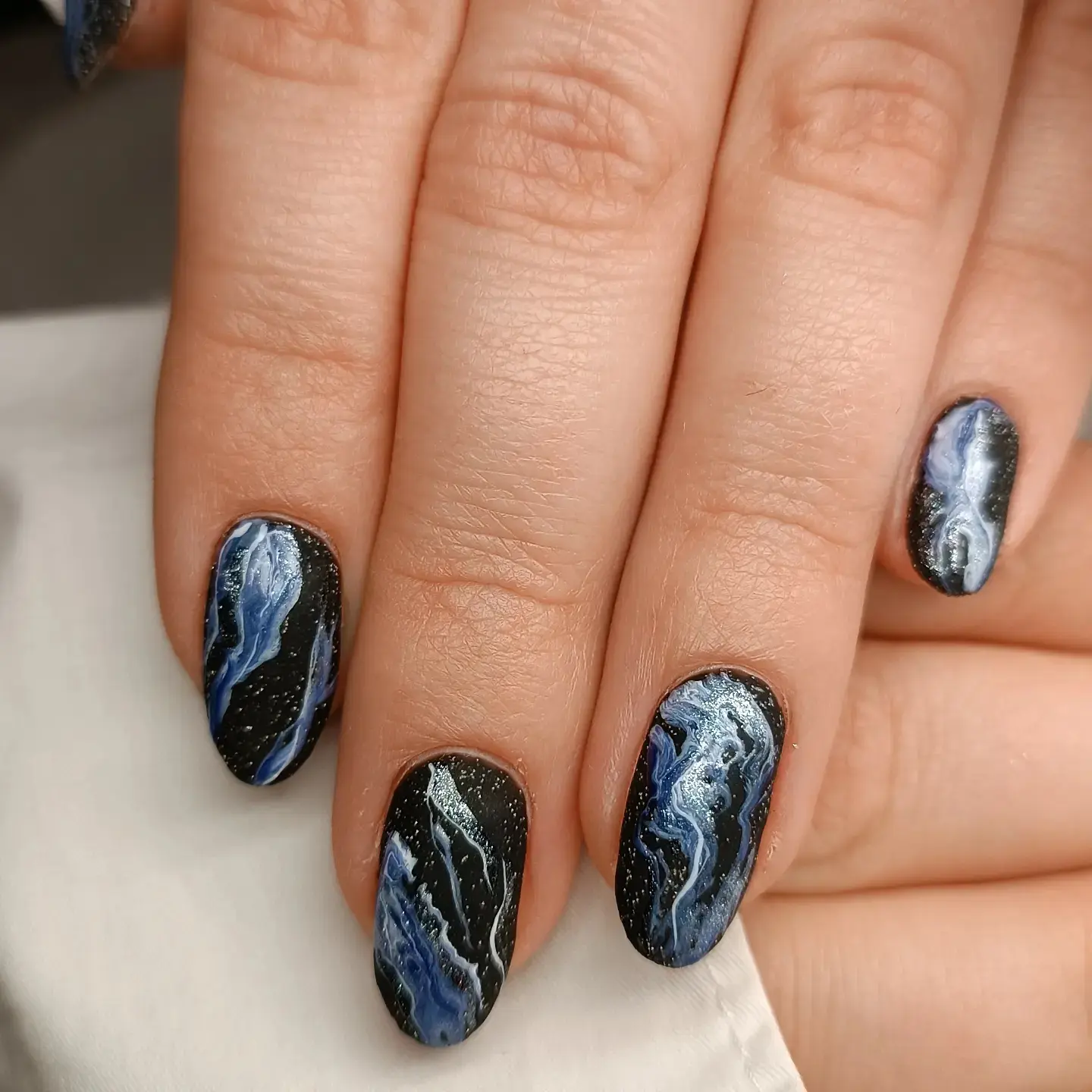 Razem z nami przenieś się w kosmos… a przynajmniej pomysł na NailArt. Tak prezentuje się praca laureatki II miejsca w konkursie Walka na Zdjęcia! Tematem przewodnim była „Galaktyczna piękność”. Zajrzyj na naszą GRUPĘ i weź udział w kolejnych edycjach konkursu. KROK PO KROKU1. Pokrywamy tipsa czarną hybrydą. Ważne jest, aby była z