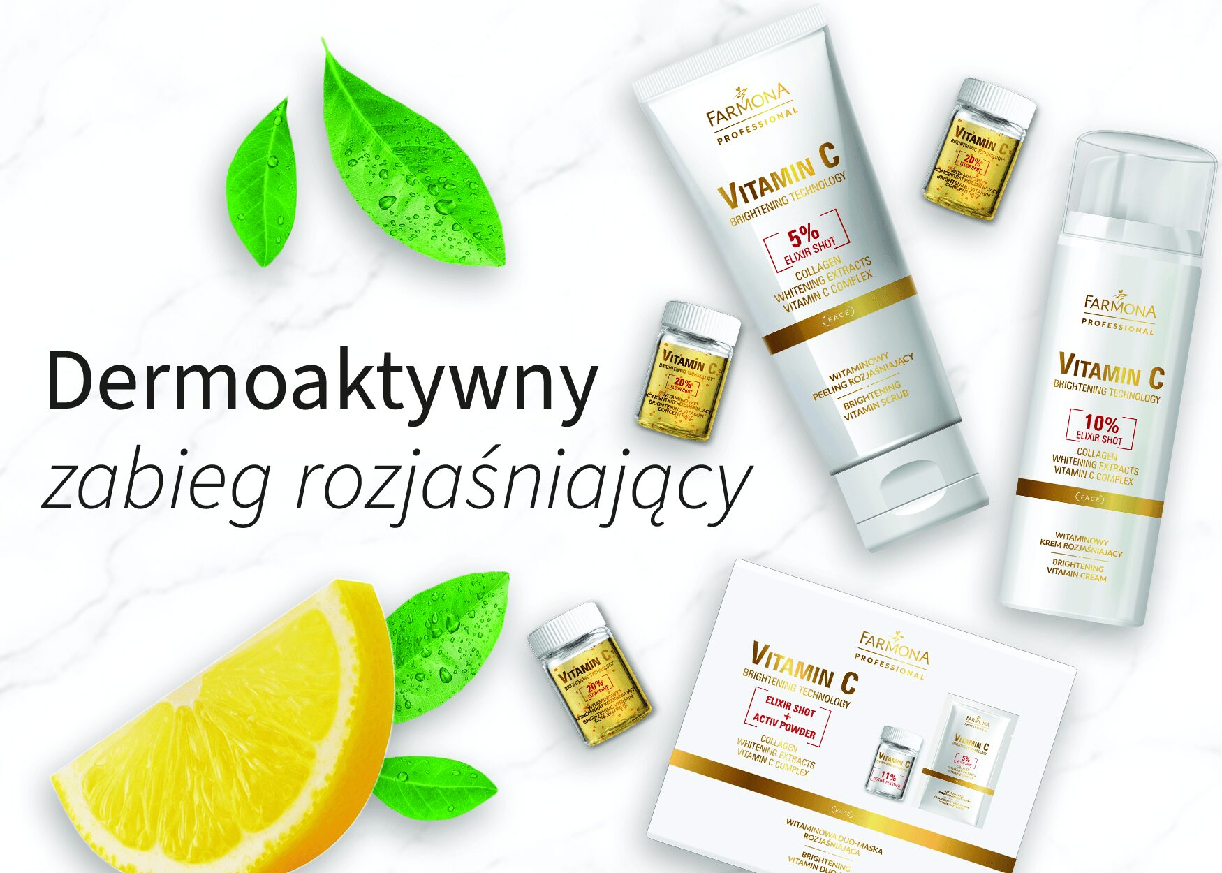 VITAMIN C to profesjonalny zabieg rozjaśniający, który idealnie sprawdzi się jesienią i zimą w terapiach gabinetowych. To pełna procedura przeznaczona dla skóry szarej, zmęczonej, z nierównym kolorytem, przebarwieniami lub oznakami starzenia. W skład linii wchodzi 7 produktów o wyjątkowych formułach: