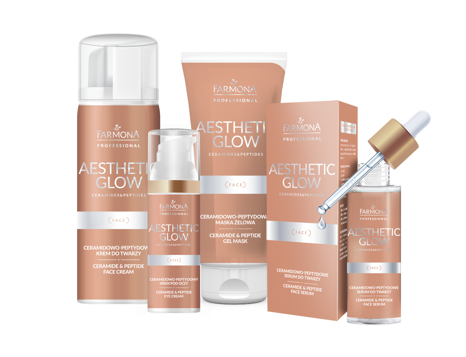 Nowa linia AESTHETIC GLOW od marki Farmona Professional to ceramidowo-peptydowy zabieg, przeznaczony dla skóry z oznakami starzenia i zmęczenia. Widocznie ujędrnia, rozświetla, nawilża i niweluje oznaki starzenia się skóry.