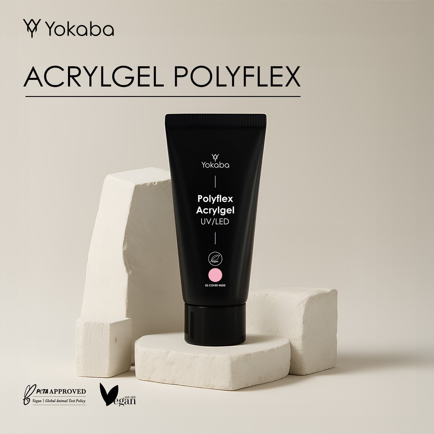 Yokaba | Profesjonalny, wegański akrylożel, łączący w sobie zalety akrylu i żelu. Świetnie nadaje się do przedłużania na szablonach i górnych formach, korekt, dopełnień oraz utwardzania naturalnej płytki paznokcia. Nie zalewa skorek i nie spływa, zapewniając pełną kontrolę nad produktem.