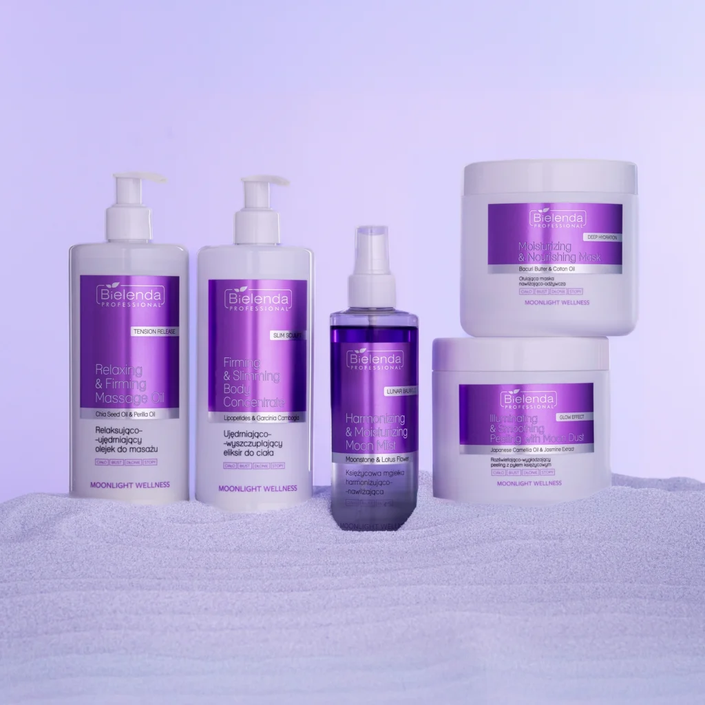 Bielenda Professional | Łączy holistyczną pielęgnację opartą na odżywczym działaniu olejów i energizującej sile kamienia księżycowego z rytuałem ukojenia zmysłów, przy zastosowaniu kosmetyków o odprężających, perfumeryjnych zapachach. Opracowany do procedur ujędrniających, wygładzających i rozświetlających skórę ciała.