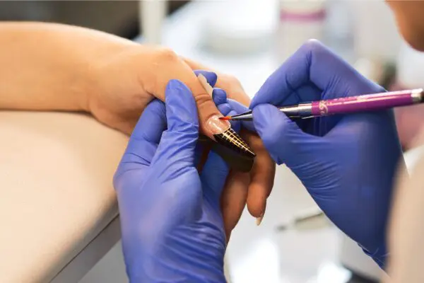 Unikaj wilgoci – zarówno dłoni klientki, jak i Twoich. Mokre palce = odklejające się szablony.