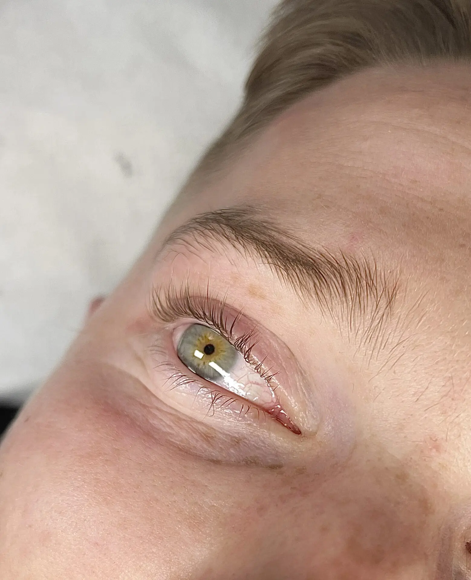 Jeśli zewnętrzny lub wewnętrzny kącik oka jest mocno opadnięty lub górne rzęsy są splątane z dolnymi, przed rozpoczęciem laminowania należy dokładnie przeanalizować oko i rzęsy. W takim przypadku produkt nakłada się wyżej, aby unieść i delikatnie podkręcić rzęsy.