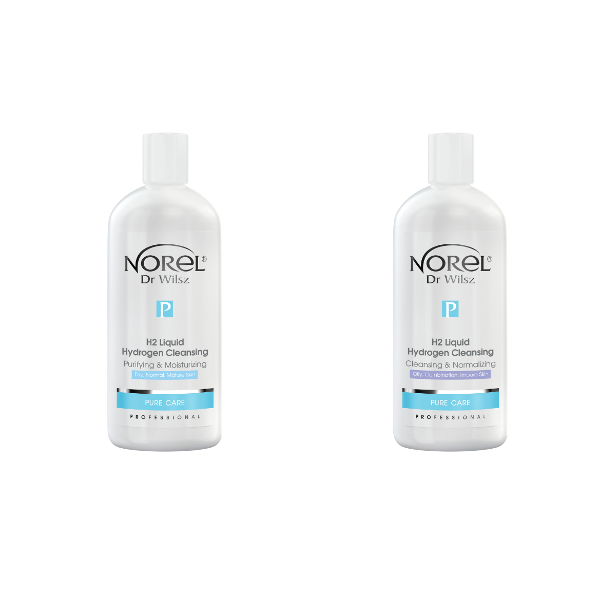 Płyny H2 do OCZYSZCZANIA WODOROWEGO, HYDRABRAZJI, OXYBRAZJI i PEELINGU KAWITACYJNEGO! 1. Płyn oczyszczająco – nawilżający. Skład: 2% kwas laktobionowy, 2% woda morska z czerwoną mikroalgą, trehaloza. Każdy rodzaj cery, sucha, normalna i dojrzała. 2. Płyn oczyszczająco – normalizujący. Skład: 2% kwas salicylowy, 2% azeloglicynę oraz ekstrakt z wiązówki błotnej. Cera tłusta, mieszana, z zaskórnikami, poszerzonymi porami, przebarwieniami potrądzikowymi.
