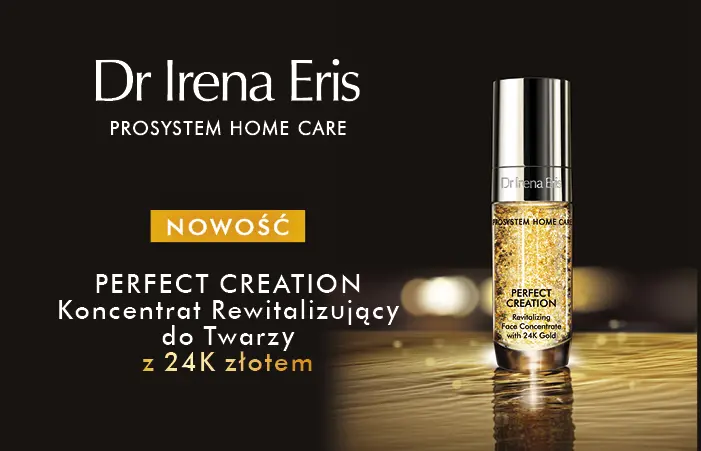 Rewitalizujący Koncentrat do Twarzy z 24K złotem Dr Irena Eris PROSYSTEM HOME CARE wzbogacił serię PERFECT CREATION o innowacyjnej technologii wielopoziomowej ochrony młodości komórkowej skóry. Kosmetyki wzmacniają efekty zabiegu PERFECT CREATION – Aktywnej terapii wygładzająco-naprawczej z opatentowanymi składnikami anti-age.