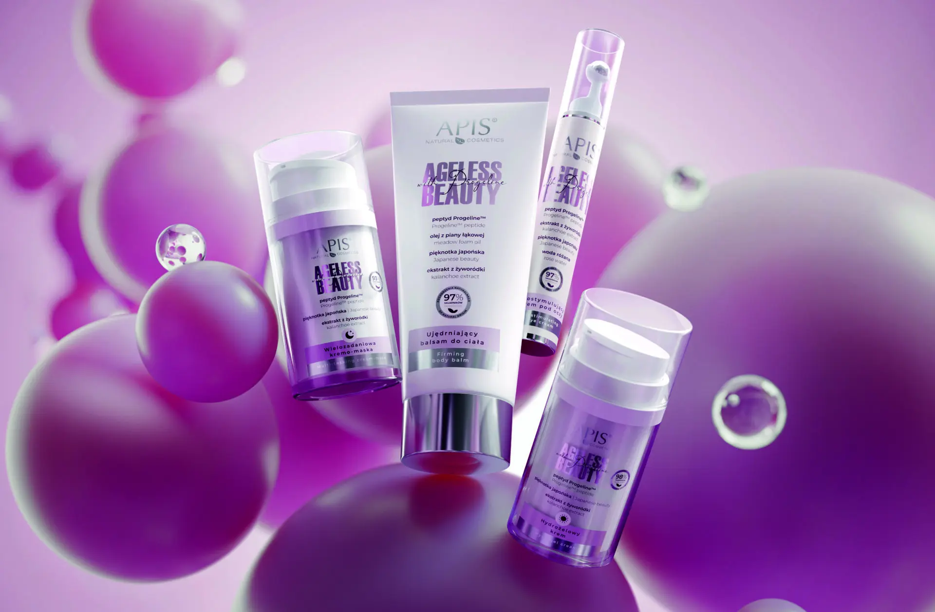 Połączyliśmy moc nauki z siłą natury, aby spowolnić proces starzenia. Najnowsza linia Ageless Beauty with Progeline to nowoczesne podejście do pielęgnacji slow-aging, które łączy harmonię nauki i bogactwo naturalnych składników. Jej sekretem jest Progelina – peptyd, który pomaga obniżać poziom białka odpowiedzialnego za starzenie się komórek skóry. Połączyliśmy go z ekstraktami z pięknotki japońskiej i żyworódki, które pozostawiają skórę doskonale odżywioną i odmłodzoną.