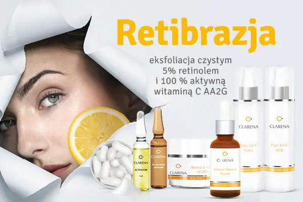 W celu zmaksymalizowania i utrwalenia efektów retibrazji warto stosować kosmetyki do pielęgnacji domowej z linii Power Pure Vit C Line. Szczególnie polecamy najnowsze serum Clarena –  Intense Retinol Serum. Kompleks z dwóch rodzajów retinolu normalizuje prace gruczołów łojowych oraz zmniejsza widoczność blizn potrądzikowych i przebarwień. W swojej domowej kosmetyczce warto mieć również Pure Vit C Milk – mleczko do demakijażu, wzmacniające ściany naczyń krwionośnych i rozjaśniające przebarwienia. Ważnym uzupełnieniem codziennego dbania o skórę jest również stosowanie toniku Pure Vit C Tonic, który przywraca skórze naturalne pH i delikatnie ją rozjaśnia.