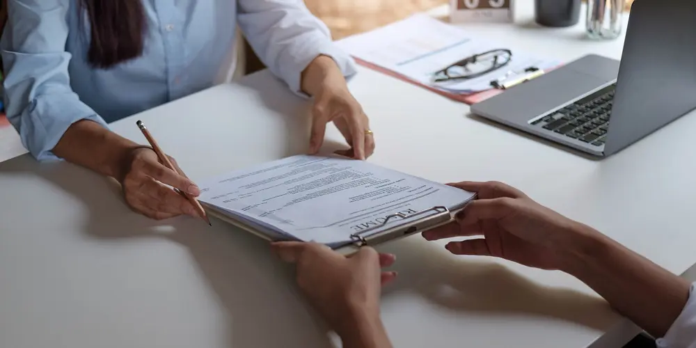 Na zdjęciu widać jak wypełniany jest kwestionariusz
